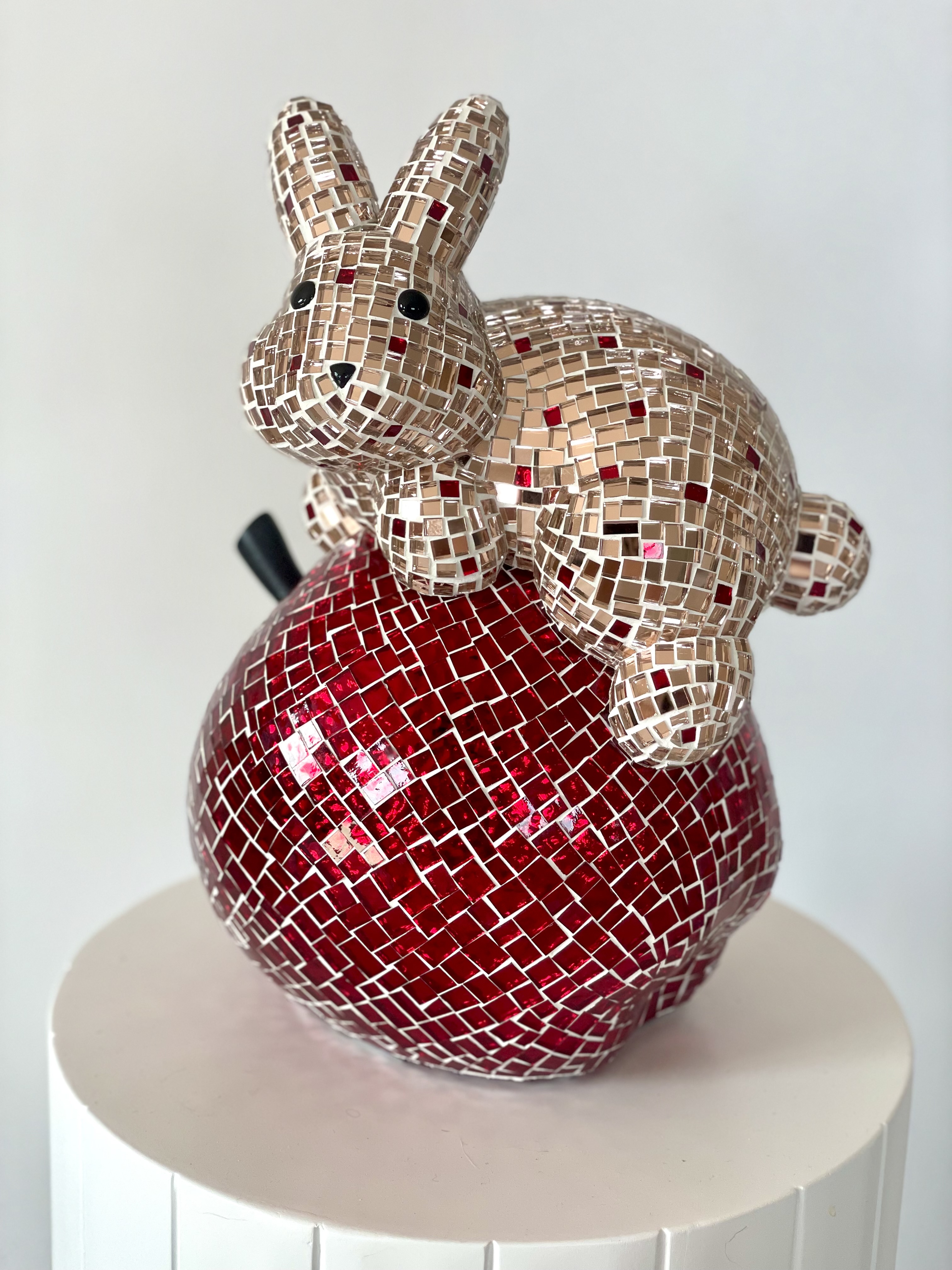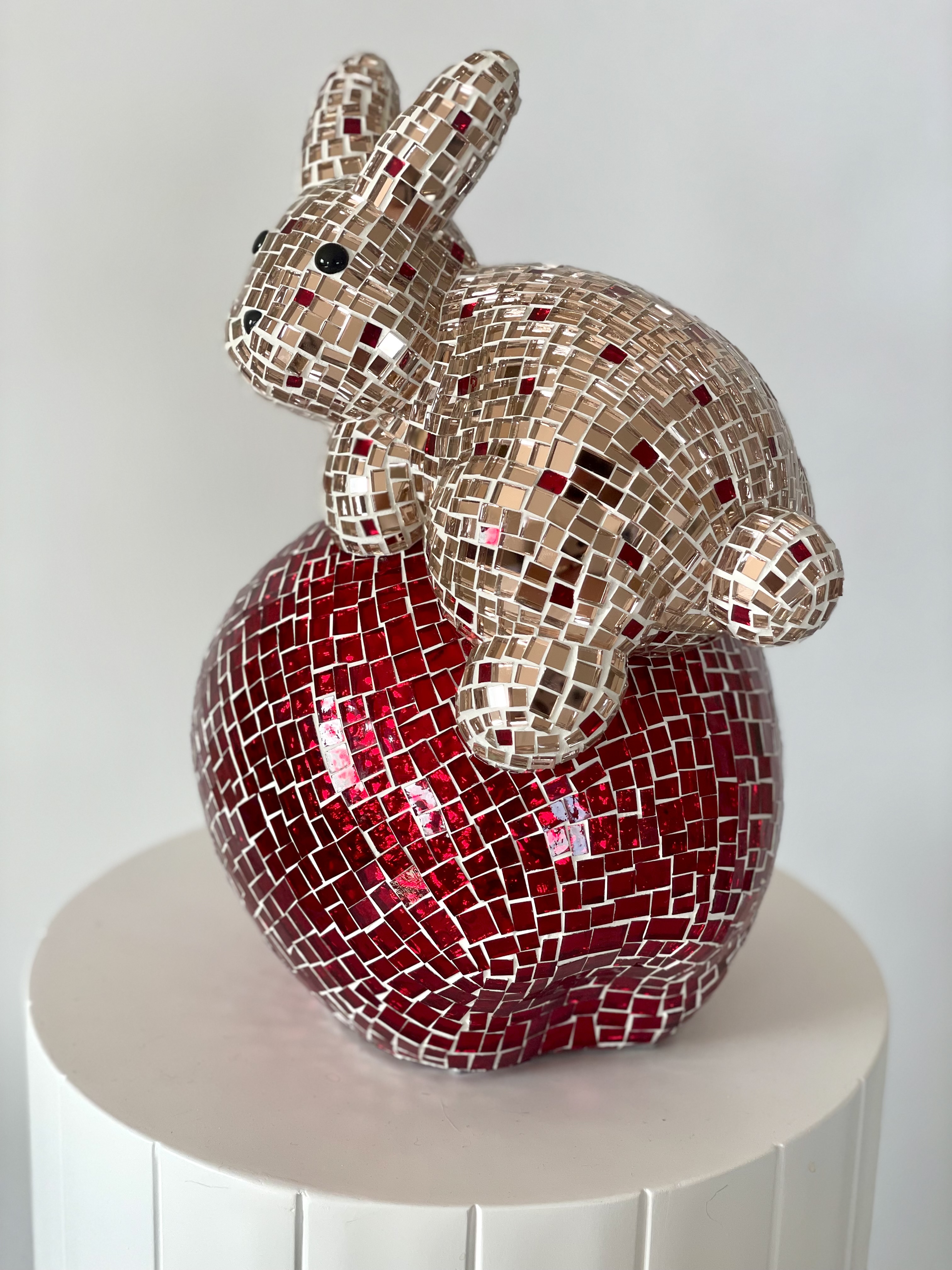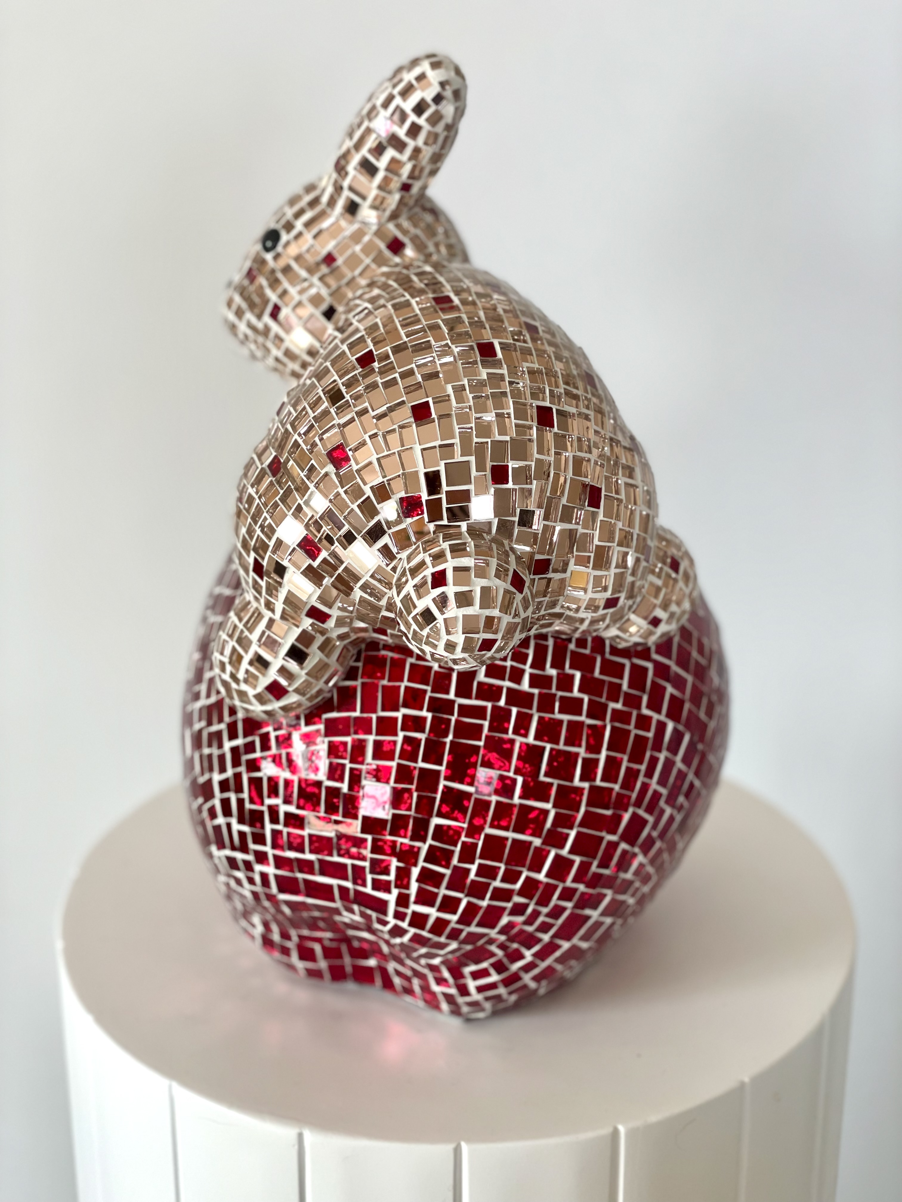 Hand-cut mirror mosaic, porcelain, polyester, 18x18x30 cm